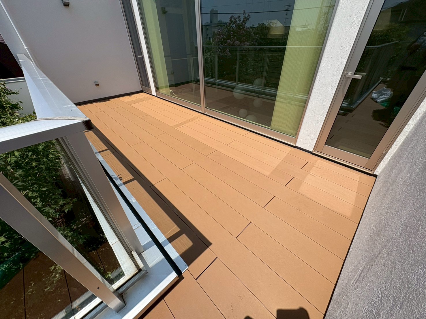デッキ材とデッキ材の間は床下が見えないような構造でまるでフローリングのような風合いと質感を再現されています✨✨