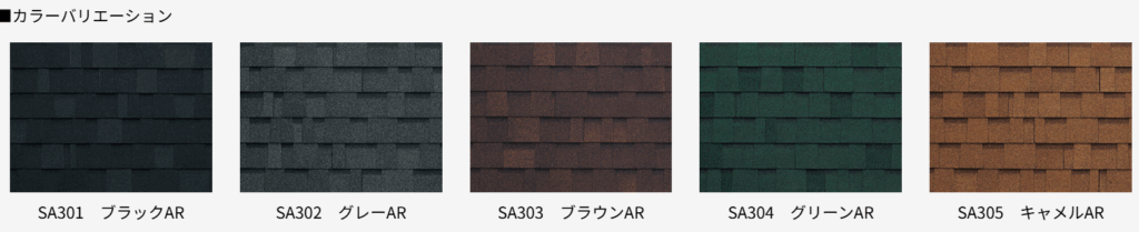 アスファルトシングルとは、ガラス繊維基材にアスファルトを含浸させ、表面に石粒を付着させた屋根材の一種で、軽量で施工しやすく、高い防水性を持っています。